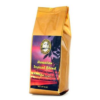 Aloha Island Island Chocolate Flavored Ground Coffee 8oz Bag contains Hawaiian and Guatemalan blended ground coffee dark roasted to perfection. This flavored coffee has a rich, dark chocolate and dark roast coffee taste and deep, full mouthfeel, making it an excellent choice for daytime or dessert coffee. Aloha Island Coffees like Island Chocolate Flavored Ground Coffee are produced in a 100% organic certified coffee roasting facility where they are roasted with an eye on preserving everything that makes Hawaiian coffee one of the world's most famous coffee varieties. These coffee blends from Aloha Island seek to capture the taste of Hawaiian coffee and blend it with the delicious tastes one might enjoy on vacation in the Hawaiian Islands.