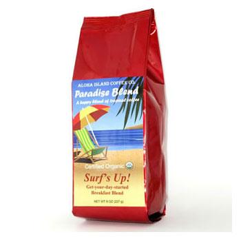 Aloha Island Surf's Up! Breakfast Blend Coffee Beans 8oz Bag contains Guatemalan coffee beans blended roasted to perfection. This elegant coffee has a outstanding, flavorful taste and smooth, pleasant mouthfeel, making it an excellent choice for daytime or dessert coffee. Aloha Island Coffees like Surf's Up! Breakfast Blend Coffee Beans are produced in a 100% organic certified coffee roasting facility where they are roasted with an eye on preserving the essential characteristics of quality Arabica coffee. These excellent coffee varieties from Aloha Island Coffee bring you the feel of vacationing in the Hawaiian Islands at home or at the office.