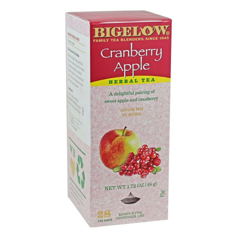 Bigelow's Cranberry Apple Herbal Tea brews a naturally decaffeinated and sweet fruit-infused tea from every tea bag that you steep. This fruit-infused tea from Bigelow's has a sweet apple flavor and fresh cranberry tartness, making it a full-flavored and naturally delicious herbal tea. Bigelow's Cranberry Apple Herbal Caffeine Free Tea comes in boxes of individually-wrapped tea bags. These tea bags are kept fresh by Biglow's special foil wrappers. Order your tea and beverage service needs online from Coffee For Less for ease and convenience.