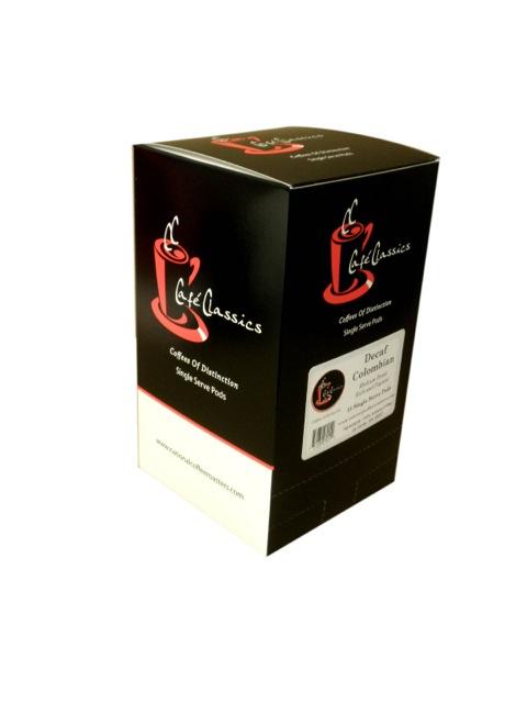 Café Classics Decaf Colombian Coffee Pods 15ct provide you with 15 coffee pods containing Café Classics Decaf Columbian Coffee that has full flavor without the caffeine of regular coffee. These Café Classics Decaf Columbian Coffee Pods brew a coffee that is at once sweet and piquant with a full body and approachable aftertaste. Cafe Classics Decaffeinated Coffees are slowly roasted to preserve the naturally engaging flavor of their coffee varieties and gently decaffeinated to preserve the innate bean character.