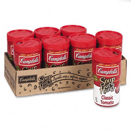 Campbells Microwaveable Classic Tomato Soup-At-Hand 8ct Box makes a hot snack or warming light meal at home, the office, or as a part of your business's food service, thanks to quality soup and modern technology and packaging. This Campbells Microwaveable Classic Tomato Soup-At-Hand gives you the opportunity to enjoy hot nourishing soup instantly. When you buy your Campbells Microwaveable Classic Tomato Soup from Coffee For Less, you get the excellent customer service, speedy shipping, and quality pricing that you expect from your typical coffee, tea, or beverage service orders from CoffeeForLess.com.