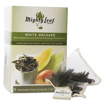 Mighty Leaf Tea White Orchard pouches provide the very best tea with Mighty Leaf Tea's handcrafted whole tea leaves that touch all the senses. Consumers are demanding higher grade teas, and these pouches are heightened with intoxicatingly fragrant fruits, spices and blossoms to exceed those expectations. Blends are wrapped in award winning commercially compostable tea pouches to provide up to a 14 oz. serving.